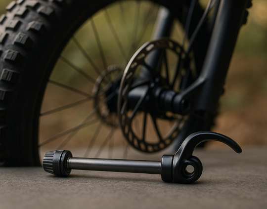 L’axe de roue est crucial pour maintenir la roue en place tout en garantissant une rotation fluide. Il existe différentes tailles et systèmes, comme l’axe traversant ou l’axe à blocage rapide.