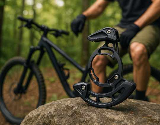Nous proposons des guides-chaînes et des protège-plateaux de différents modèles et tailles pour s'adapter aux différents types de pédaliers, tels que les modèles à un ou deux plateaux, afin que vous puissiez trouver le produit idéal pour votre VTT.