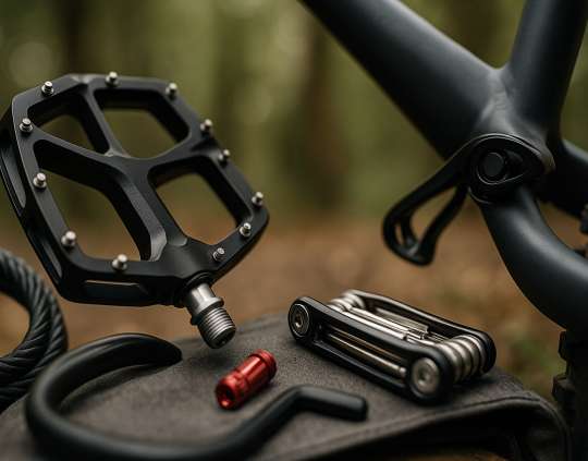 Dans la catégorie Pédales / Accessoires de cadre, les passionnés de VTT trouveront une gamme variée de composants pour optimiser leur expérience. Nos pédales offrent un transfert de puissance optimal, qu'il s'agisse de pédales plates robustes ou de systèmes automatiques précis. De plus, les accessoires de cadre assurent protection et stabilité, garantissant ainsi la fiabilité de votre VTT même dans des conditions exigeantes. Des roulements résistants aux transmissions en passant par les gaines de câbles innovantes, tous nos produits sont conçus pour supporter des charges importantes et durer longtemps. Choisissez les composants adaptés pour un confort, des performances et une sécurité optimaux lors de vos sorties.