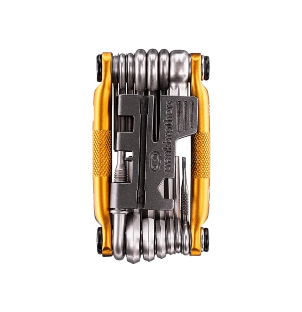 Le multi-outil CRANKBROTHERS M20 est un outil pratique et polyvalent conçu pour les cyclistes souhaitant être parés à toute éventualité lors de leurs sorties. Ce multi-outil possède de nombreuses fonctionnalités utiles, notamment des tournevis plats et Torx, un redresseur de disques de frein et un outil de réparation pour pneus tubeless avec mèches. De plus, le multi-outil CRANKBROTHERS M20 comprend également une sélection de clés Allen de 2, 2,5, 3, 4, 5, 6 et 8 mm, ainsi qu'un dérive-chaîne compatible avec les chaînes 8 à 12 vitesses. Avec ses dimensions compactes (89 mm x 48 mm x 19 mm), cet outil se glisse facilement dans votre sac à dos. Sont également inclus une clé Torx de tailles T25 et T10, une clé pour écrous de rayons, un extracteur d'obus de valve et un bouchon de gonflage pour pneus jusqu'à 40 PSI. L'outil multifonction CRANKBROTHERS M20 est un outil fiable et pratique qui deviendra un atout précieux pour tout cycliste.