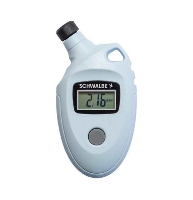 - Manomètre numérique pour une mesure précise de la pression des pneus. Mesure la pression jusqu'à 11 bars. Compatible avec les valves Auto et Presta. Convient également aux valves Schwalbe classiques. Adaptateur pour valves Schwalbe Clik inclus.